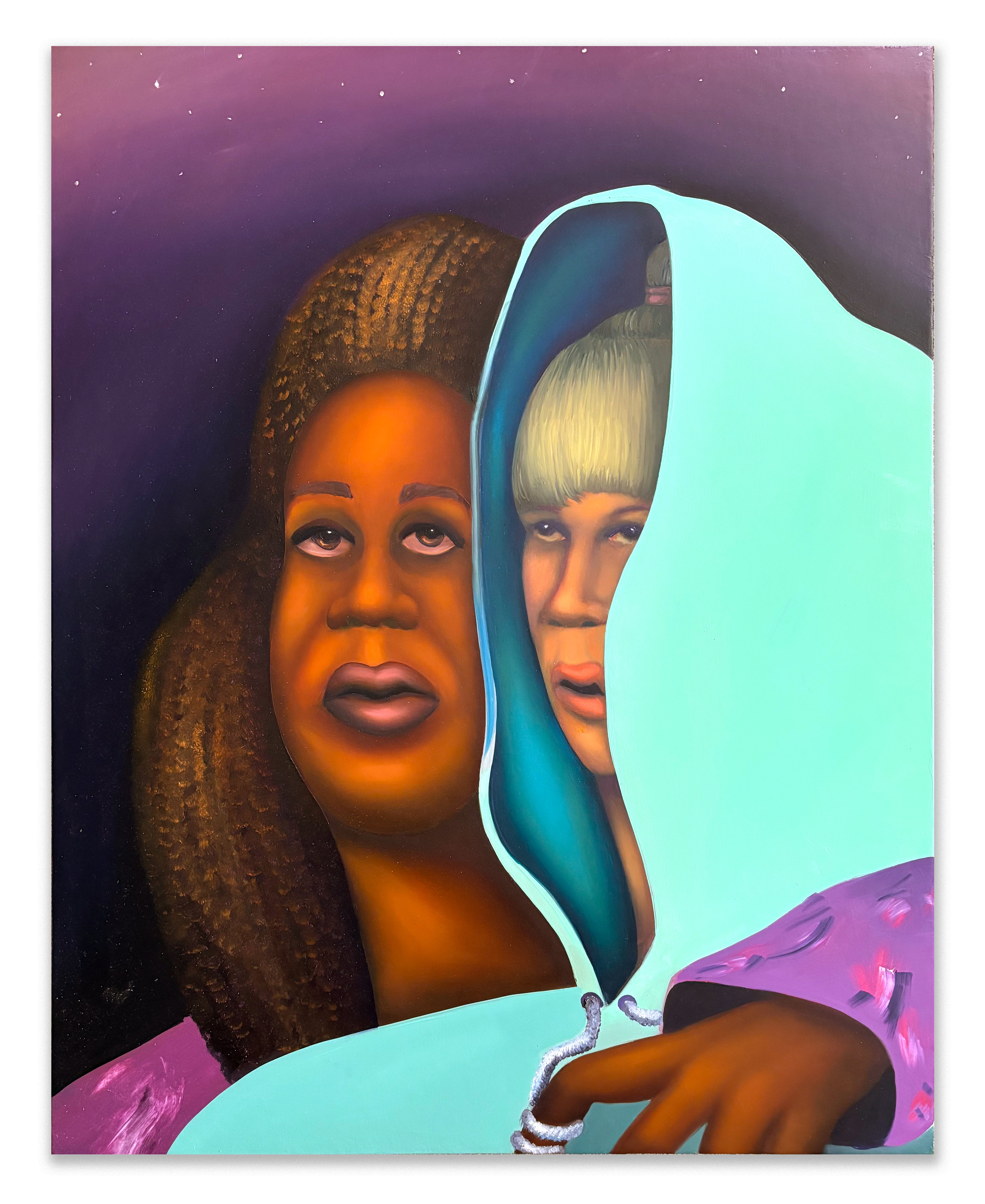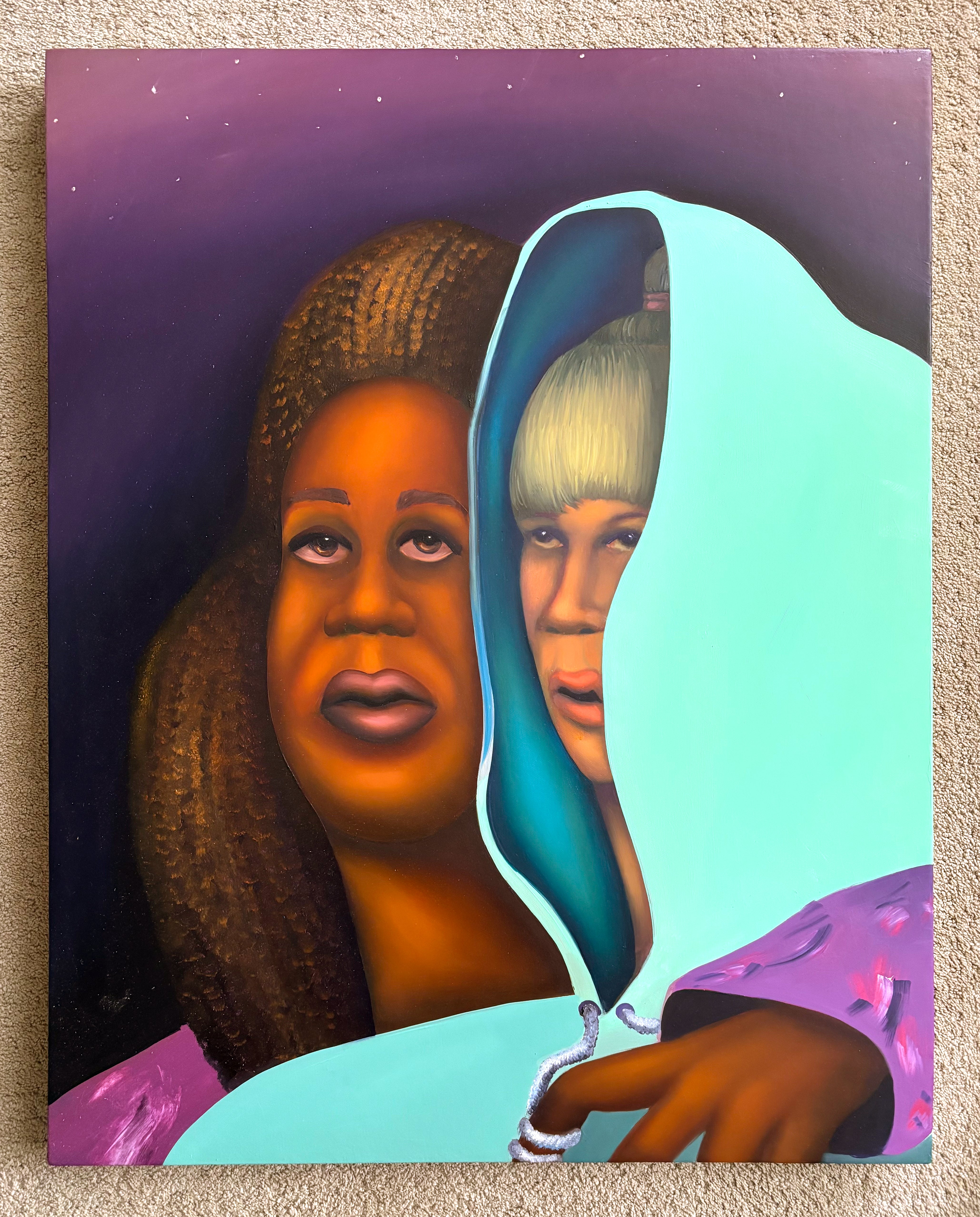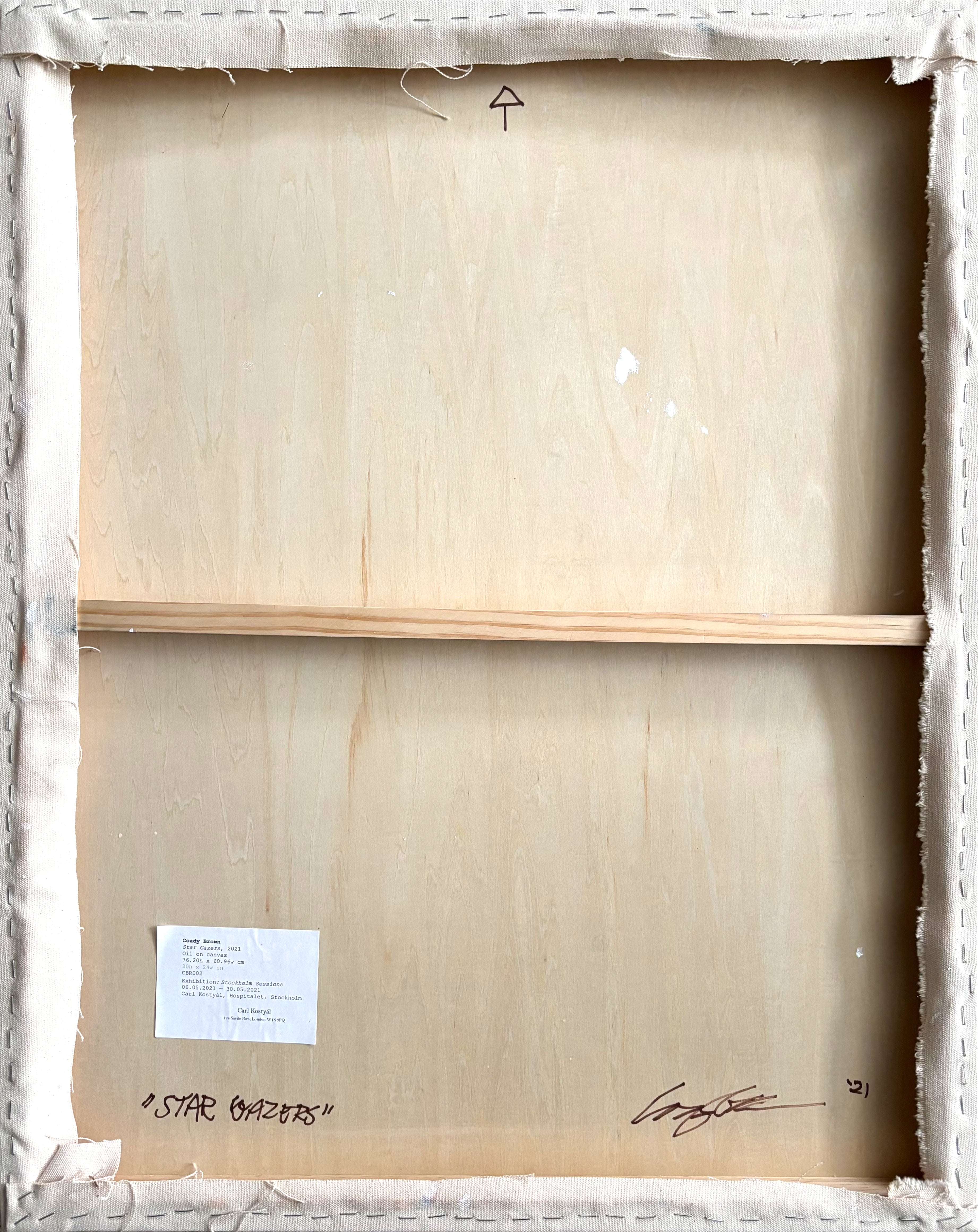 Cody Brown "Star Gazer". Oil on Wood panel 2021. Measures 27.5" x 24" inches. Signed and titled verso with gallery labels as shown.